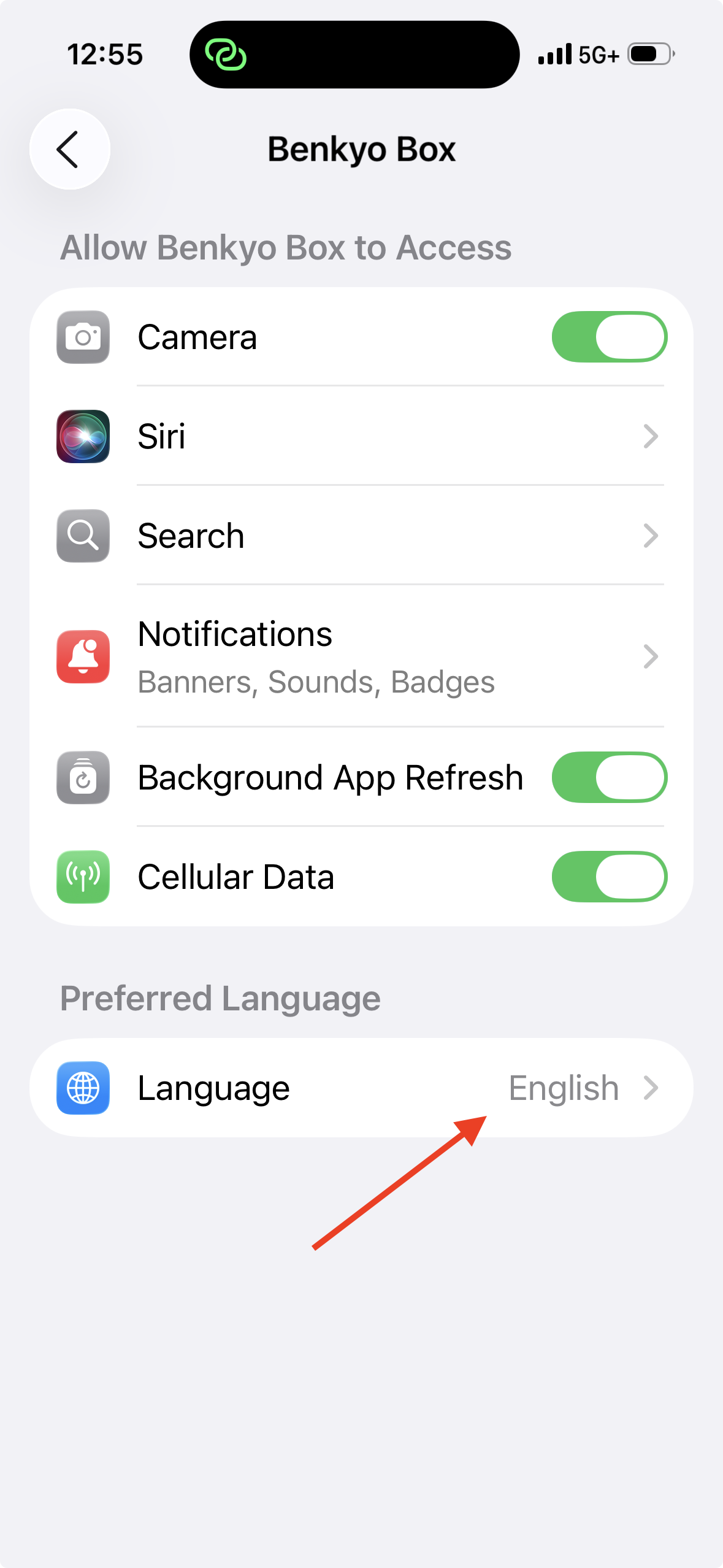 - On iPhone & iPad Open the system Settings, then go to Apps -> Benkyo Box, then select Language to change it.
